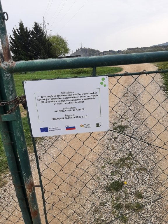 KZ Hoče z.o.o. se na 1. javni razpis za podintervencijo naložbe pravnih oseb in samostojnih podjetnikov posameznikov v okviru intervencije IRP16 naložbe v prilagoditev na podnebne spremembe pri trajnih nasadih za leto 2024 prijavlja z naložbo v postavitev trajnih nasadov jablan s protitočno mrežo.